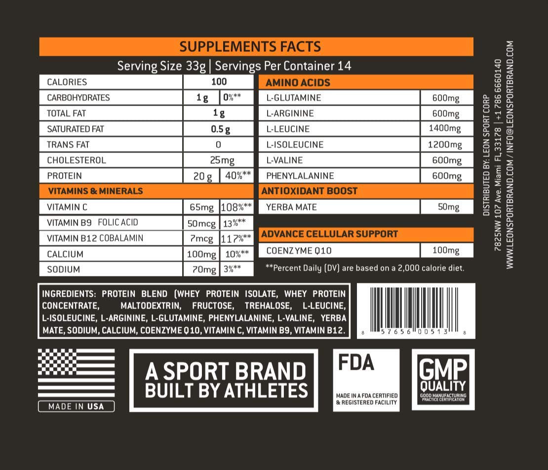 ? Protein is its basic nutrient, we add amino acids (bcaa) to your recipe. and because we are competitive we raise a step above and added coenzyme Q10 which is going to aid in the repair of intramuscular collagen, cartilages and bones healthy