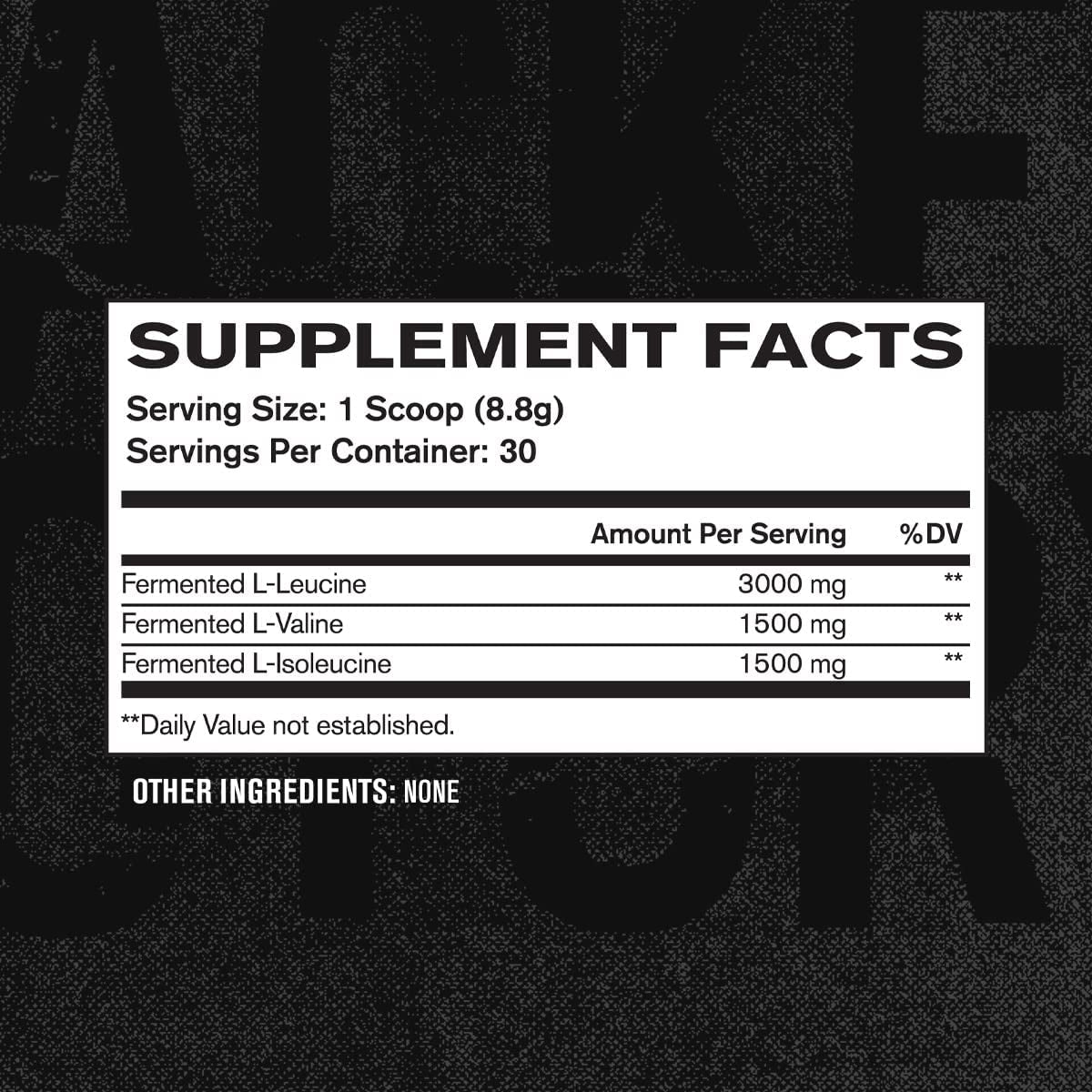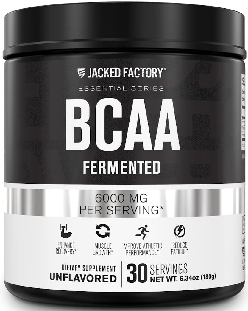 - High-Quality BCAA Powder. Take your workouts to the next level while reaping the benefits of greater muscle anabolism and increased recovery. Jacked Factory BCAAs contains 3000mg of L-Leucine, 1500mg of L-Valine, and 1500mg of L-Isoleucine, for maximum athletic performance.