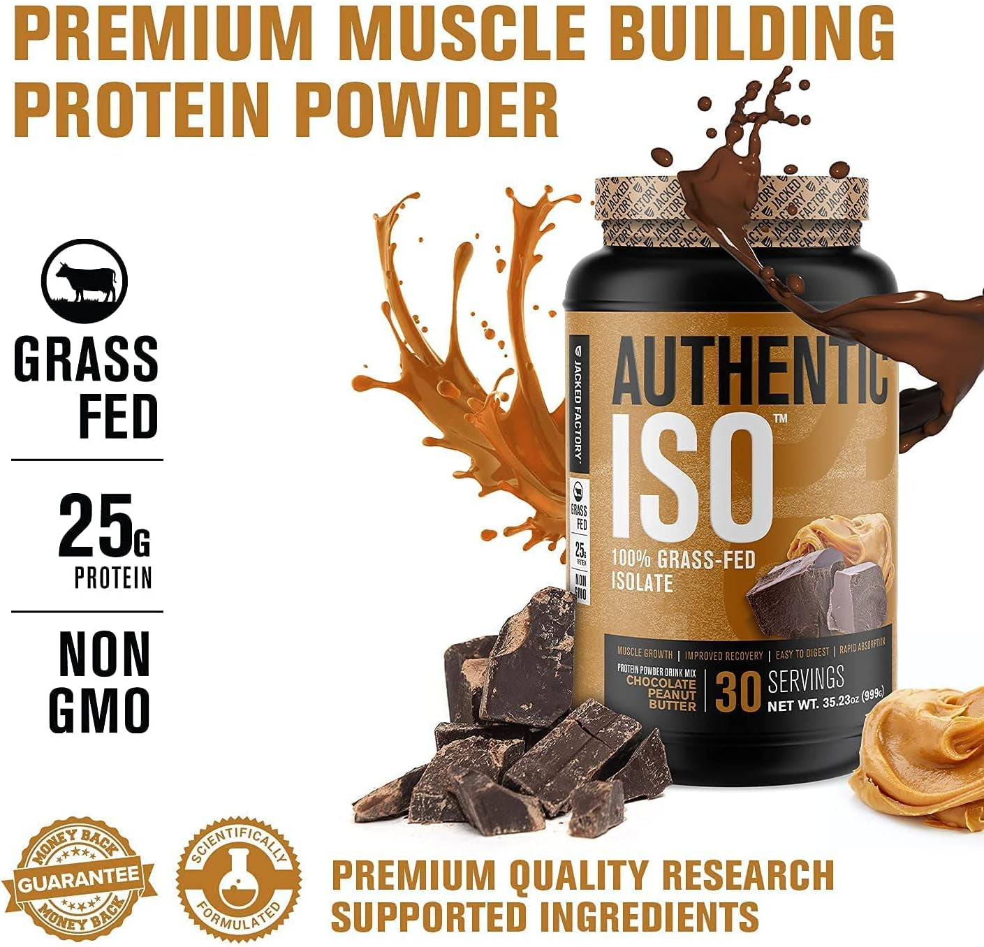 - Authentic ISO 100% Grass Fed Muscle Building Whey Protein Isolate Powder