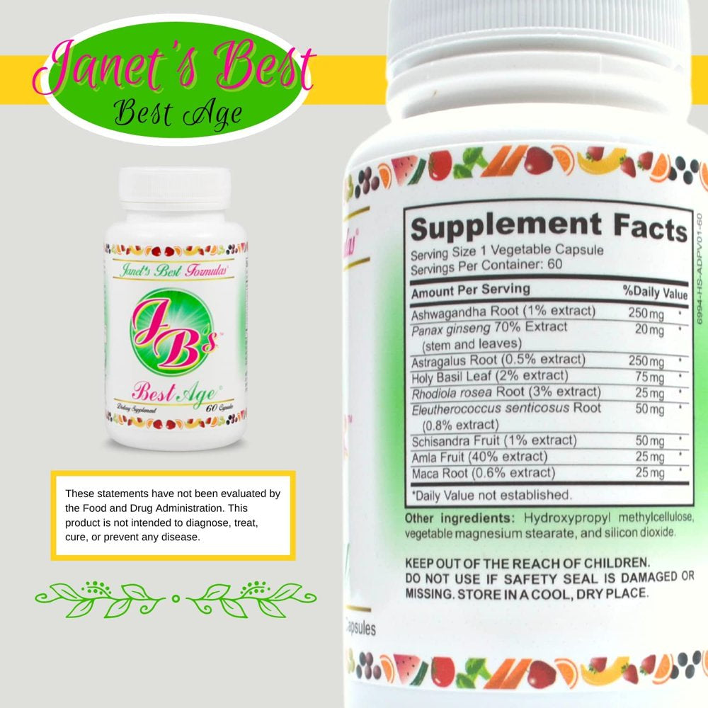 - Anti Aging Support: Janet's Best Age features a multitude of organic ingredients specifically chosen to support immune health, grip strength, quality sleep, and stamina.