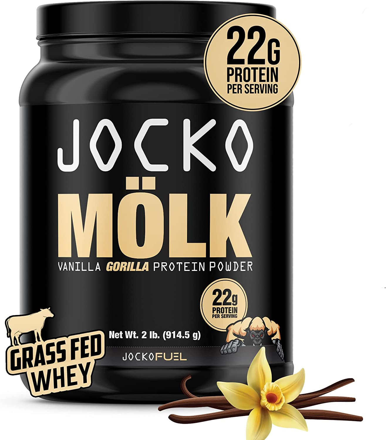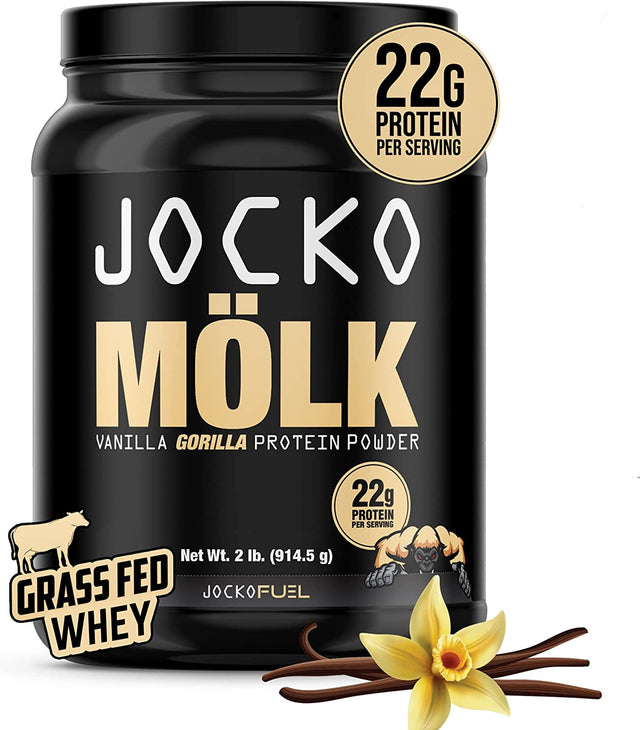 Jocko Mölk Whey Protein Powder (Vanilla) - Keto, Probiotics, Grass Fed, Digestive Enzymes, Amino Acids, Sugar Free Monk Fruit Blend - Supports Muscle Recovery & Growth - 31 Servings (2Lb Old Tub)