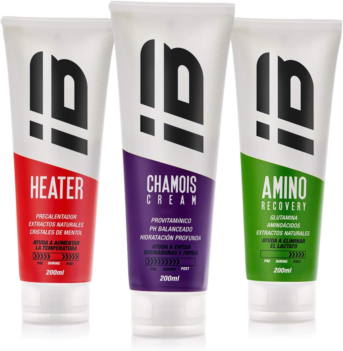 Our Products are Specifically designed to prepare your muscles before exercise and workouts, giving them a pre-heating and guaranteeing an optimum condition to start the training session or race to avoid injuries and muscle cramps It's an innovative combination of natural extracts and Aminoacids with UV protection that create an intelligent system of controlled temperature fortifying an stimulating your body and circulation. Mode of Use: Apply before physical activity over all your muscles and articulation zones massaging until the cream is absorbed by the body. The Heater could also be used for zones with injuries or pain for post training. The Amino is recommended to be used after training for proper recovery. The Chamois can be used either directly in the cloth or skin.
