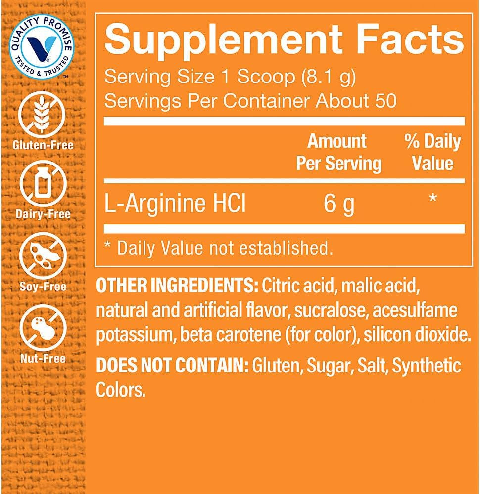 L-Arginine Hcl Amino Acid Powder - Nitric Oxide Booster & Supports Cardiovascular Health - Tropical Flavor (50 Servings)