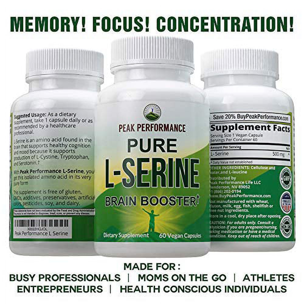 Get the L-Serine you need from a Trusted, High Quality Source. A great Cognitive supplement for Men and Women! These L-Serine pills were designed for fast absorption and are easy on the stomach.*,Supports Brain Function, Attention, Memory, And Focus - Peak Performance L-serine is a naturally occurring dietary amino acid, usually sourced from certain vegetable and meat sources. It promotes cognitive health including memory, focus and concentration. Serine plays important roles in the body, synthesis of protein, fatty acid, DNA and RNA, brain and nervous system function, and more!*,Made Without GMOs - Free of Gluten, GMOs, Additives, Preservatives, Artificial Colors, Soy, and Dairy. Manufactured Under The Highest Quality GMP Regulations and USA Standards.,Most Supplements Sold Are Not 3rd Party Tested! This is a dirty secret that many supplement sellers don't want you to know that their products are Not independently 3rd party tested outside of their own facilities. Why? Because it's an extra out of pocket expense to conduct 3rd party testing and most companies will not sacrifice their profit. But Not Us. Peak Performance is committed to the Highest Standards for your safety.,Over Happy Customers 1-for-1 Donation To Vitamin Angels. Peak Performance is celebrating over happy customers and we are also very proud of our 1-for-1 donation match program. For every unit you purchase, through our partnership with the nonprofit Vitamin Angels, we will supply a child at risk of malnutrition with vitamins for 1 year! To date, we've supplied over 1 Million children with life changing Vitamins- So thank you for helping us continue this great cause!