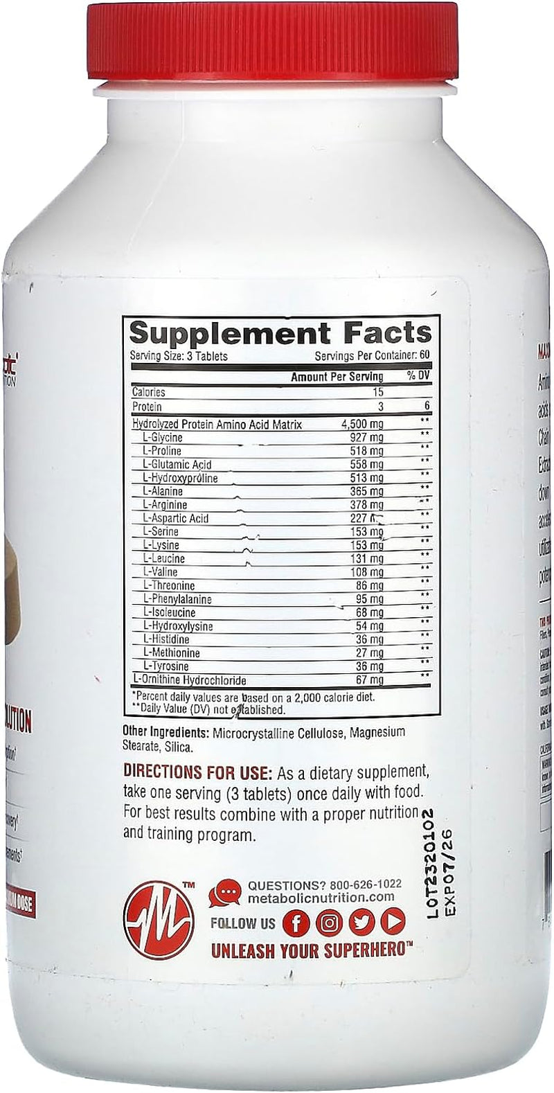 Metabolic Nutrition Amino 4500 Tablets Maximum Potency Hydrolyzed Amino Acid Complex 4500Mg (180)