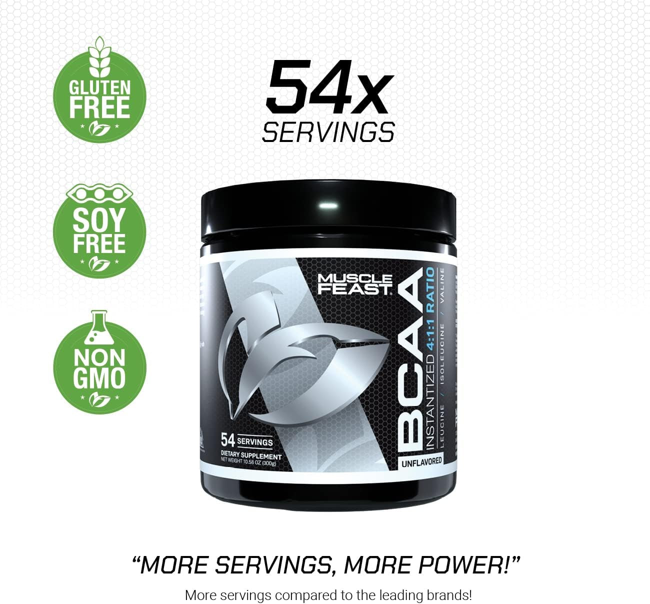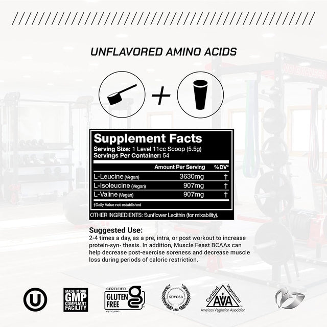 Muscle Feast Vegan BCAA Powder 4:1:1 Ratio Keto Friendly Sugar Free Post Workout Recovery, Unflavored, 300G…
