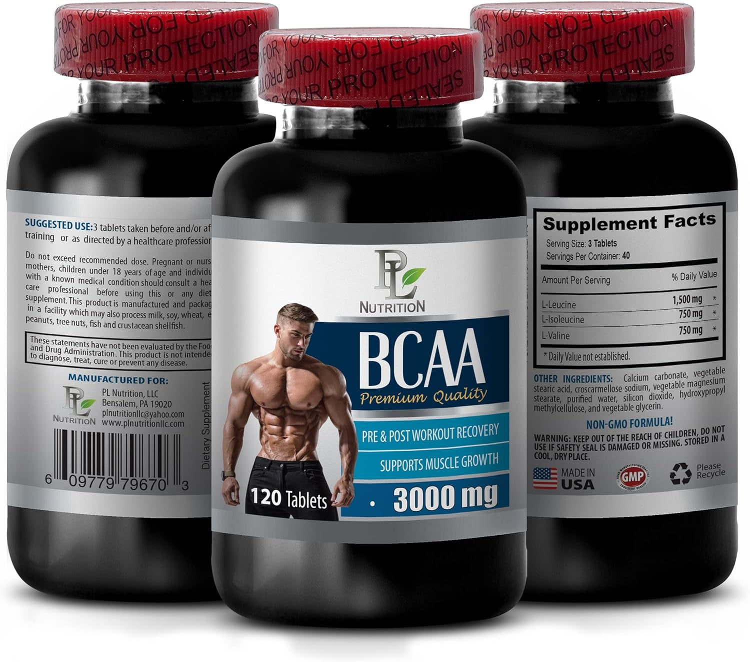 muscle growth dietary supplement capsules - BCAA 3000 MG PRE & POST WORKOUT RECOVERY - PREMIUM QUALITY - bcaas amino acids - bcaa pills - bcaa pills for men - bcaa supplement - bcaa - 1B 120 Tablets