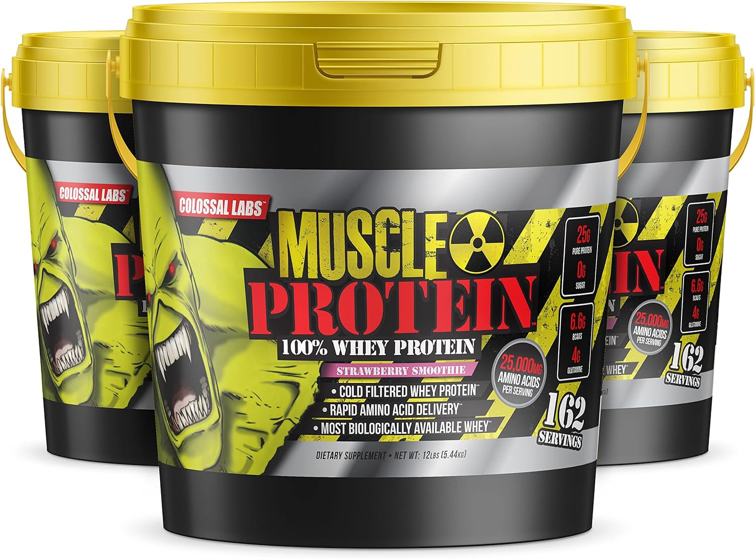 Muscle Protein Whey Powder [12 Lbs/Pack of 1]-Strawberry Protein Powder, Cold Filtered, 25G Pure Protein, 6.6G Bcaas(Packaging May Vary) - Strawberry / 12 Pound (Pack Of 1) is backordered and will ship as soon as it is back in stock.