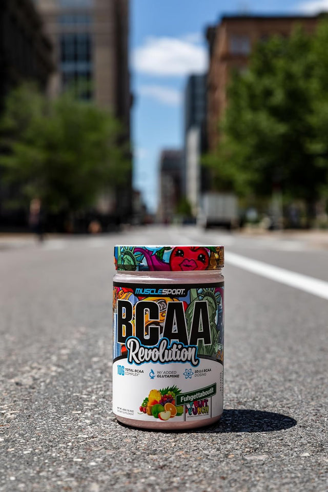 Musclesport BCAA Revolution Amino Acid Powder Supplement for Men & Women - Intra Workout Training Complex - Recovery Supplement (Fuhgettaboutit Fruit Punch, 30 Servings) - Fuhgettaboutit Fruit Punch / 30 Servings (Pack Of 1) is backordered and will ship as soon as it is back in stock.