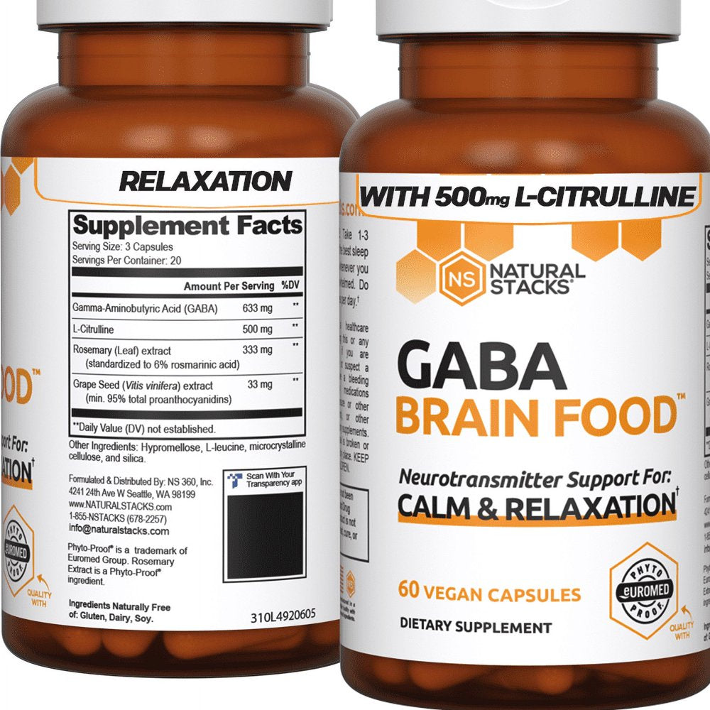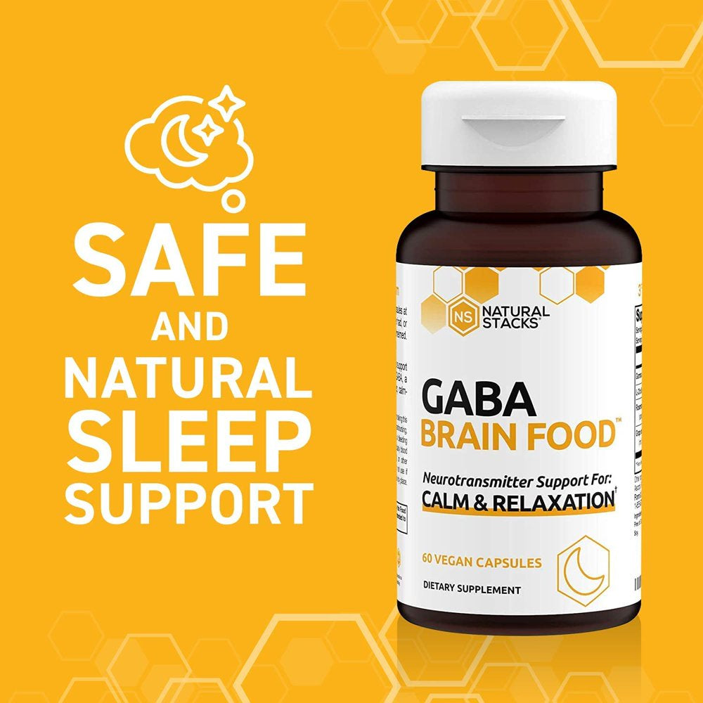 Natural Stacks Gamma-Aminobutyric Acid GABA Supplement 60 Ct. - Deep Relaxation and Calm - Night Time Sleep Aid - Brain Food Formula Promotes GABA (Gamma-Aminobutyric Acid)