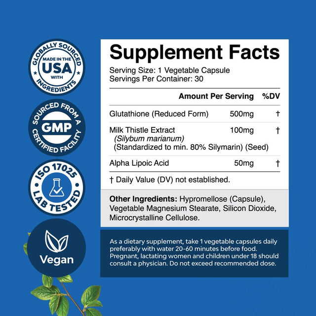 - Liver support supplement - Our 500 mg per serving glutathione capsules are formulated for milk thistle liver cleanse and as an ALA liver health supplement and nutritional supplement for immunity support
