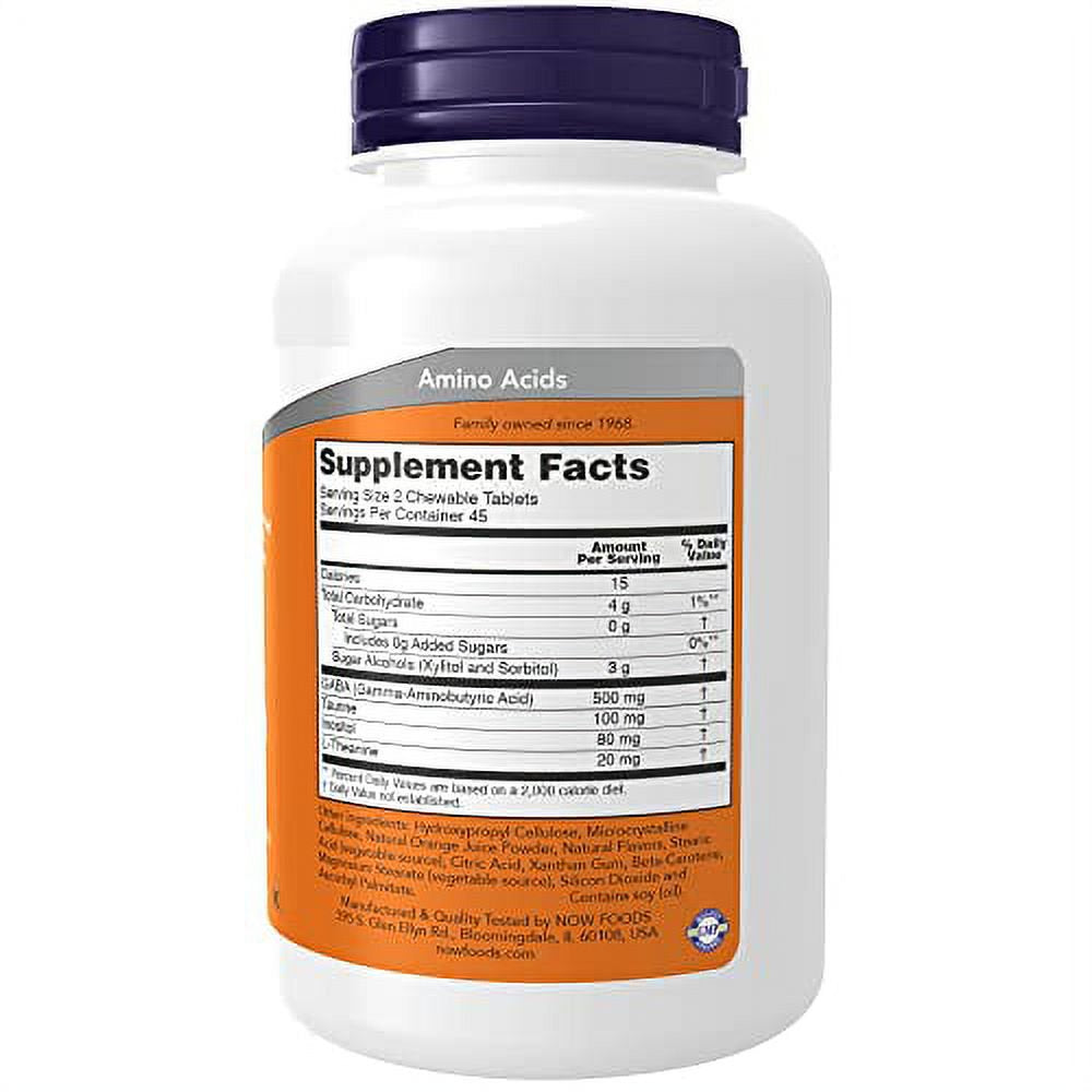 NOW Supplements, GABA (Gamma-Aminobutyric Acid), Neurotransmitter Support*, Orange Flavor, 90 Chewables