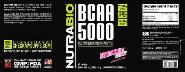 - SUPPORTS LEAN MUSCLE GROWTH – Branch chain amino acids (BCAAs) are essential to muscle protein synthesis. NutraBio’s BCAA 5000 combines leucine, isoleucine, and valine in the scientifically supported 2:1:1 ratio to ensure the best results.