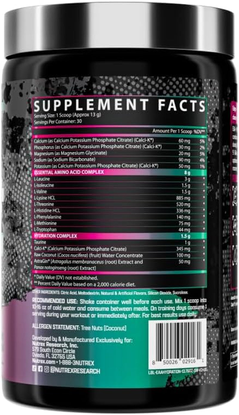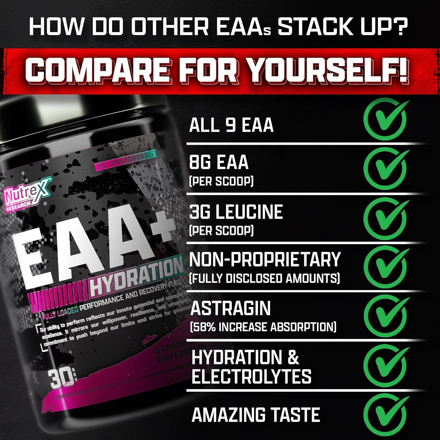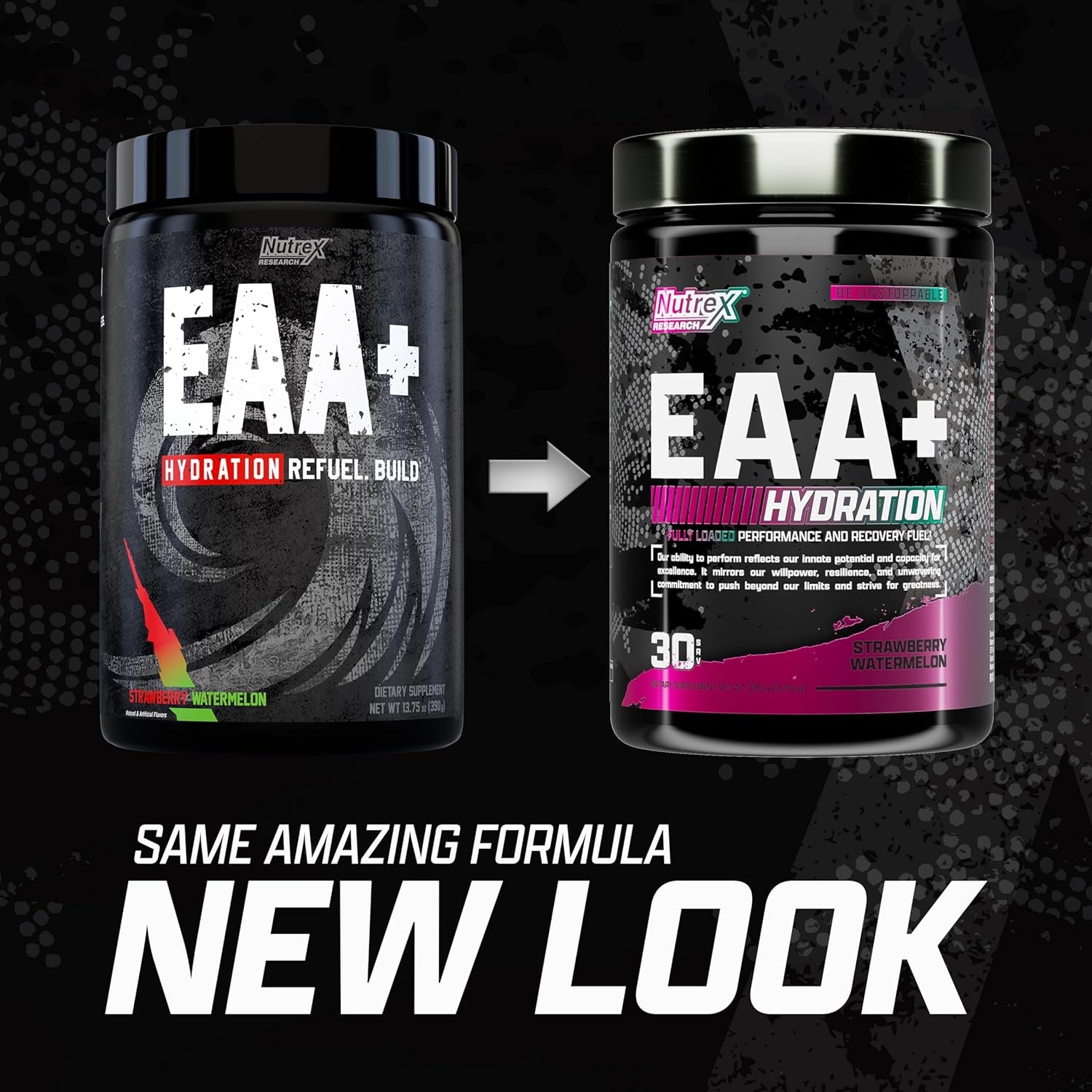 Nutrex Research EAA Hydration | Eaas + BCAA Powder | Muscle Recovery, Strength, Muscle Building, Endurance | 8G Essential Amino Acids + Electrolytes | Strawberry Watermelon 30 Serving