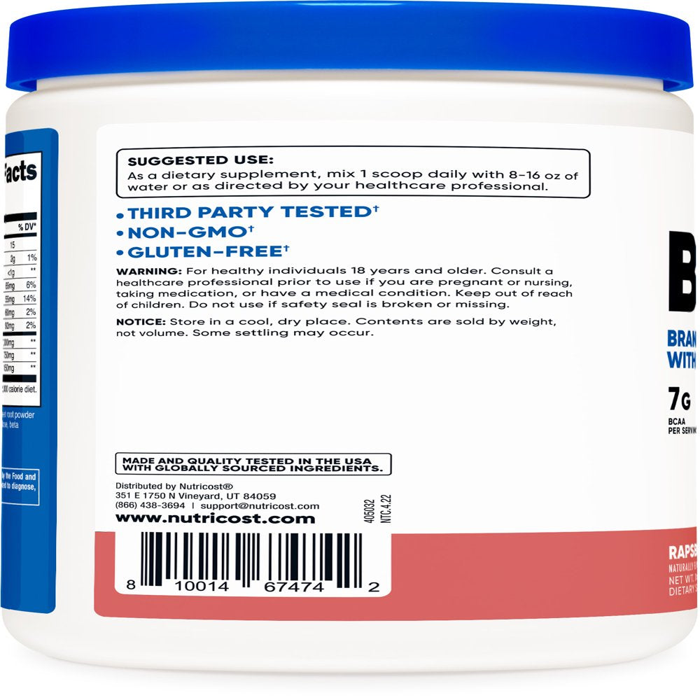 Nutricost Performance BCAA + Hydration Powder uses the optimum blend for a low-calorie BCAA. This bottle contains 30 servings of delicious raspberry lemonade BCAA powder plus our hydration blend. Nutricost, located and headquartered in the USA, only uses the best ingredients to ensure maximum quality and to help you feel your best! By keeping our supplement recipes simple and clean, you get the best experience possible with Nutricost. Our supplements are manufactured in a GMP-compliant and FDA-registered facility; and each batch of every product is tested by independent, ISO-accredited laboratories. These statements have not been evaluated by the Food and Drug Administration. This product is not intended to diagnose, treat, cure, or prevent any disease.
