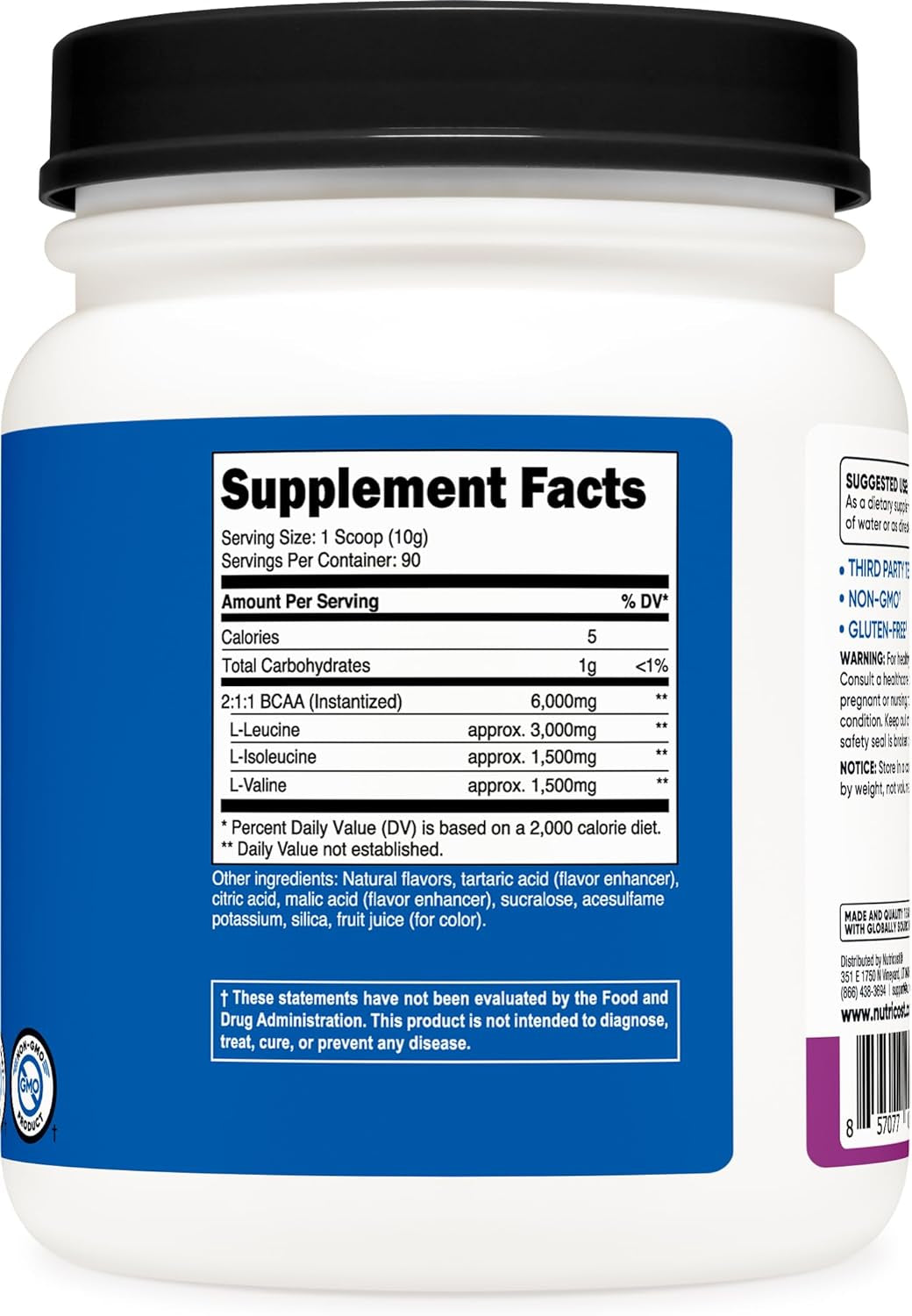 Nutricost BCAA Powder (Grape, 90 Servings) - Optimal 2:1:1 Ratio, Vegetarian, Non-Gmo