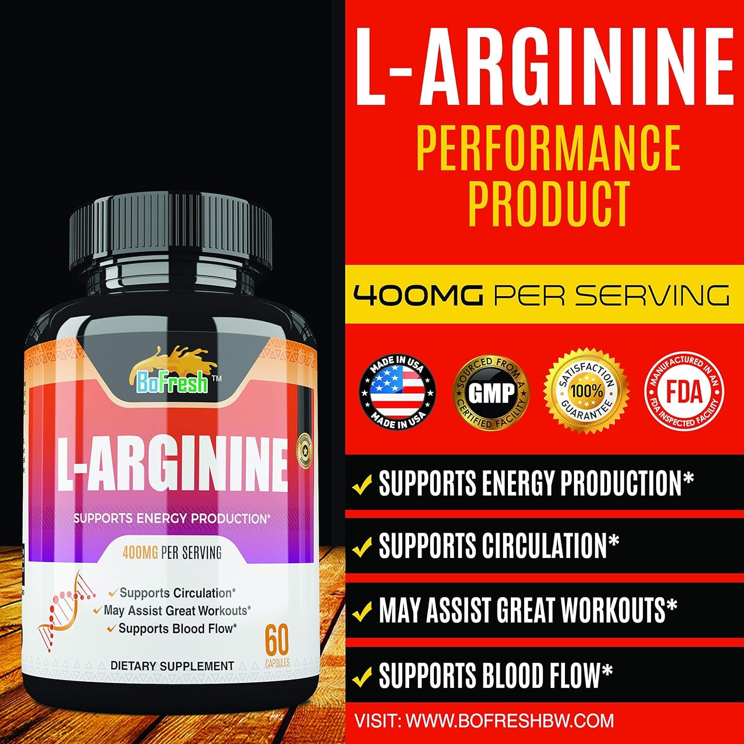 Nutrition - Energy Production L Arginine - 1200Mg Supplement for Muscle Support, Circulation and Blood Flow - L-Citrulline & Essential Amino Acids to Support Physical Endurance, 60 Capsules