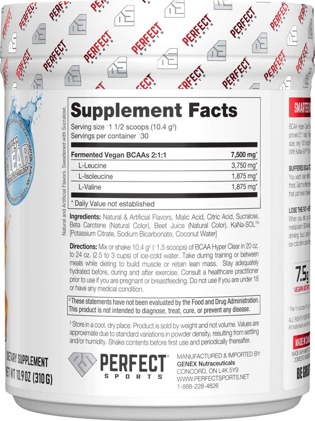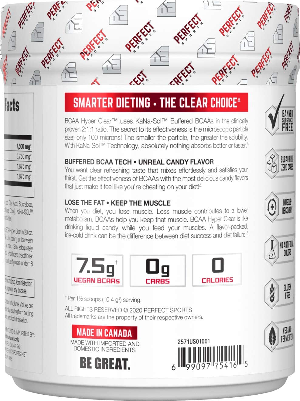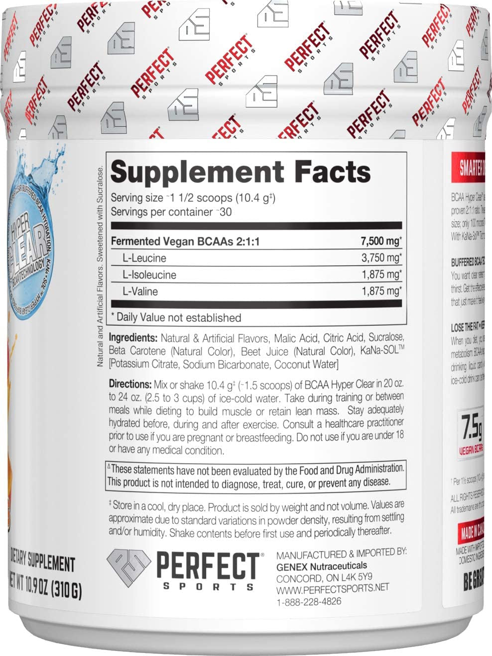 PERFECT SPORTS, BCAA Hyper Clear, 7.5G Vegan Bcaas 310G Intense Peach Rings
