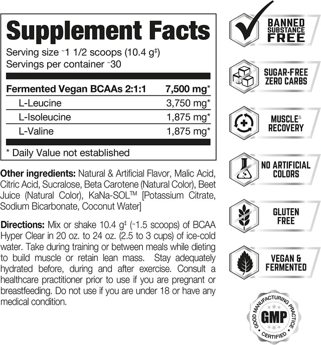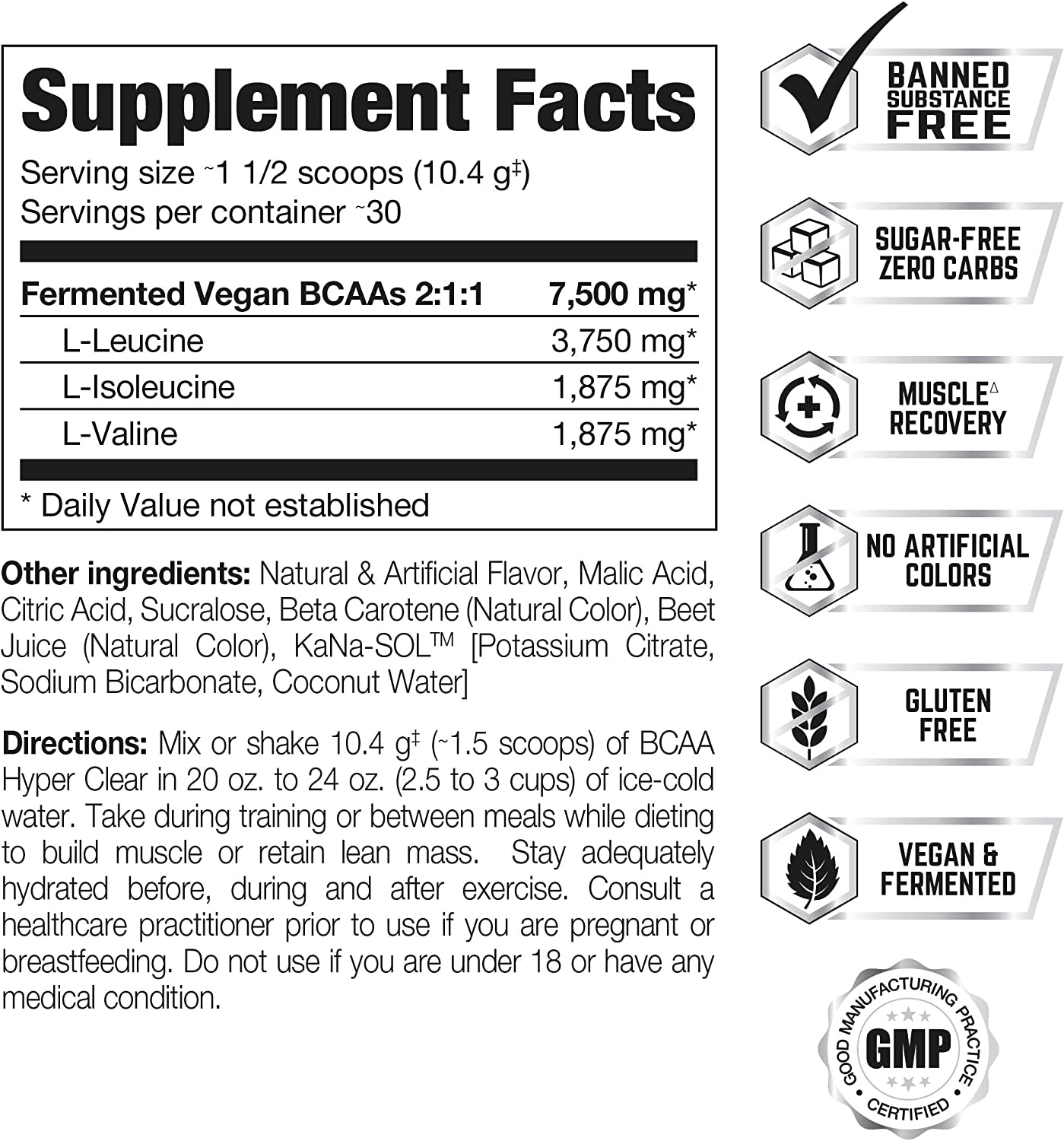 Premium Vegan BCAA (non-GMO) with 0g Sugar, 0g Carbs, and 0g Fat