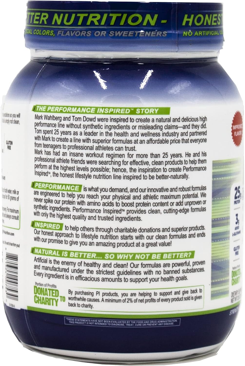 - Proud to give back and we donate 2% of NET Profits to Charity! All of our products are proudly made in world-class GMP manufacturing facilities with a guarantee of Purity & Potency without any Banned Substances. We offer top-quality products at an amazing value for all of our high-performance natural and clean formulas with great taste. Upgrade your supplements and nutrition to Performance Inspired.