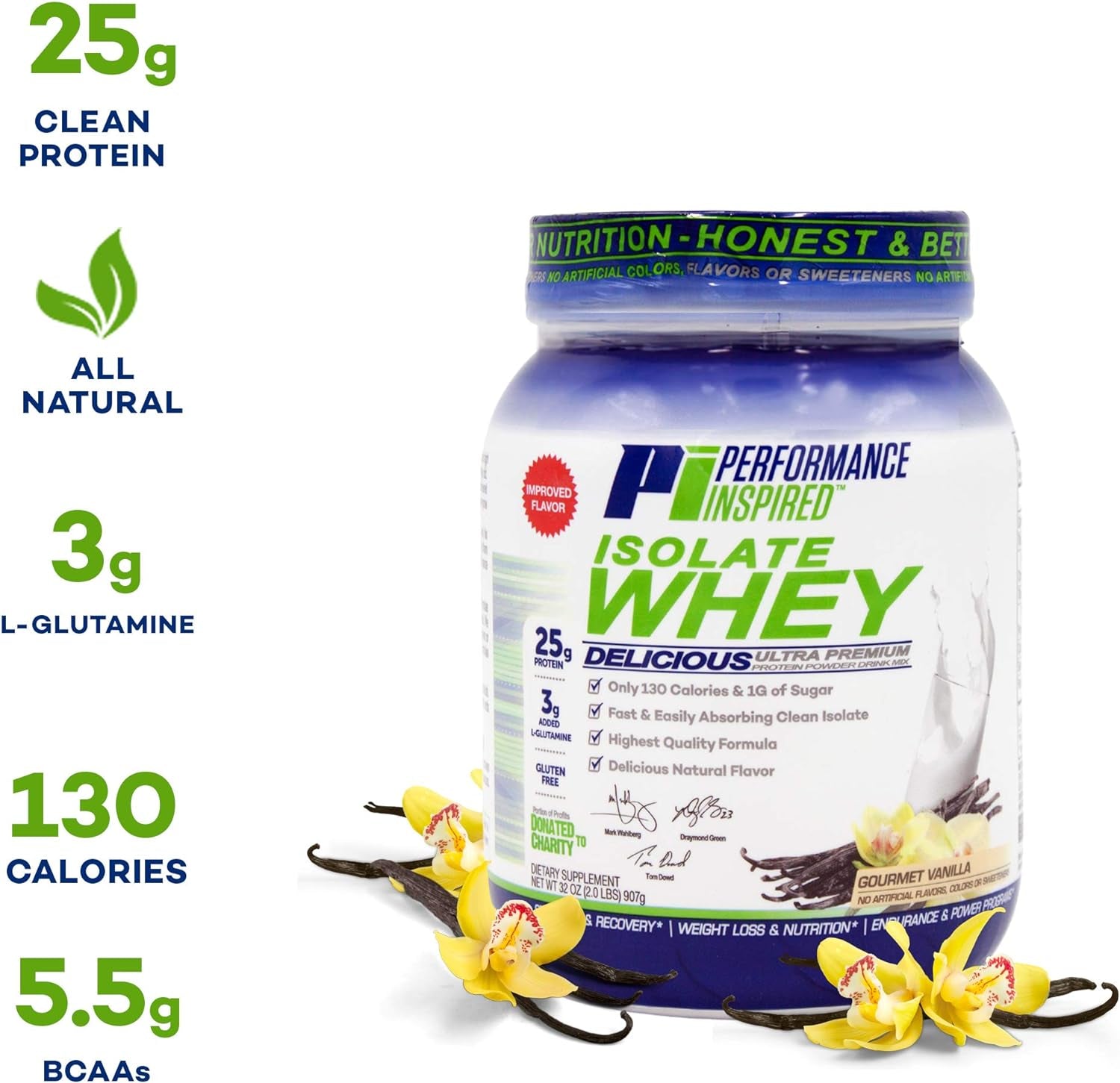 PERFORMANCE INSPIRED Nutrition - Isolate Whey Protein Powder - All Natural - 25G - Fast Absorbing & Clean - Added L-Glutamine - Contains Bcaas - Gluten Free -2 Lb - Gourmet Vanilla