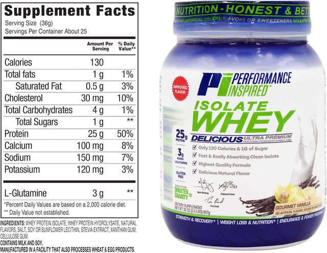 PERFORMANCE INSPIRED Nutrition - Isolate Whey Protein Powder - All Natural - 25G - Fast Absorbing & Clean - Added L-Glutamine - Contains Bcaas - Gluten Free -2 Lb - Gourmet Vanilla is backordered and will ship as soon as it is back in stock.