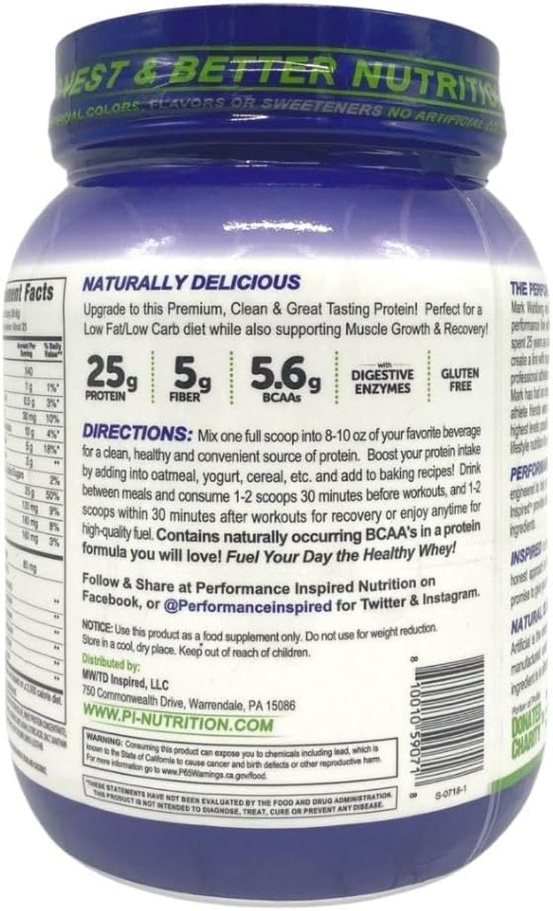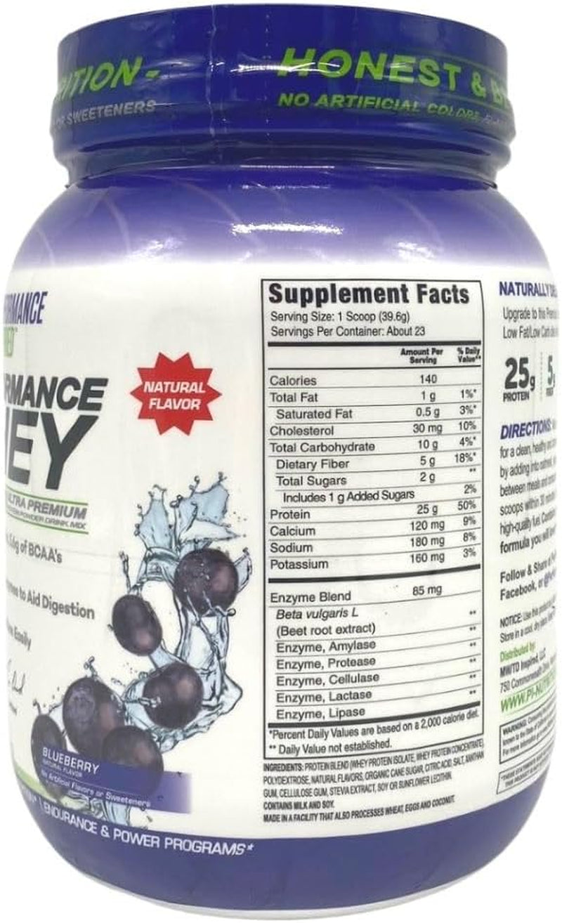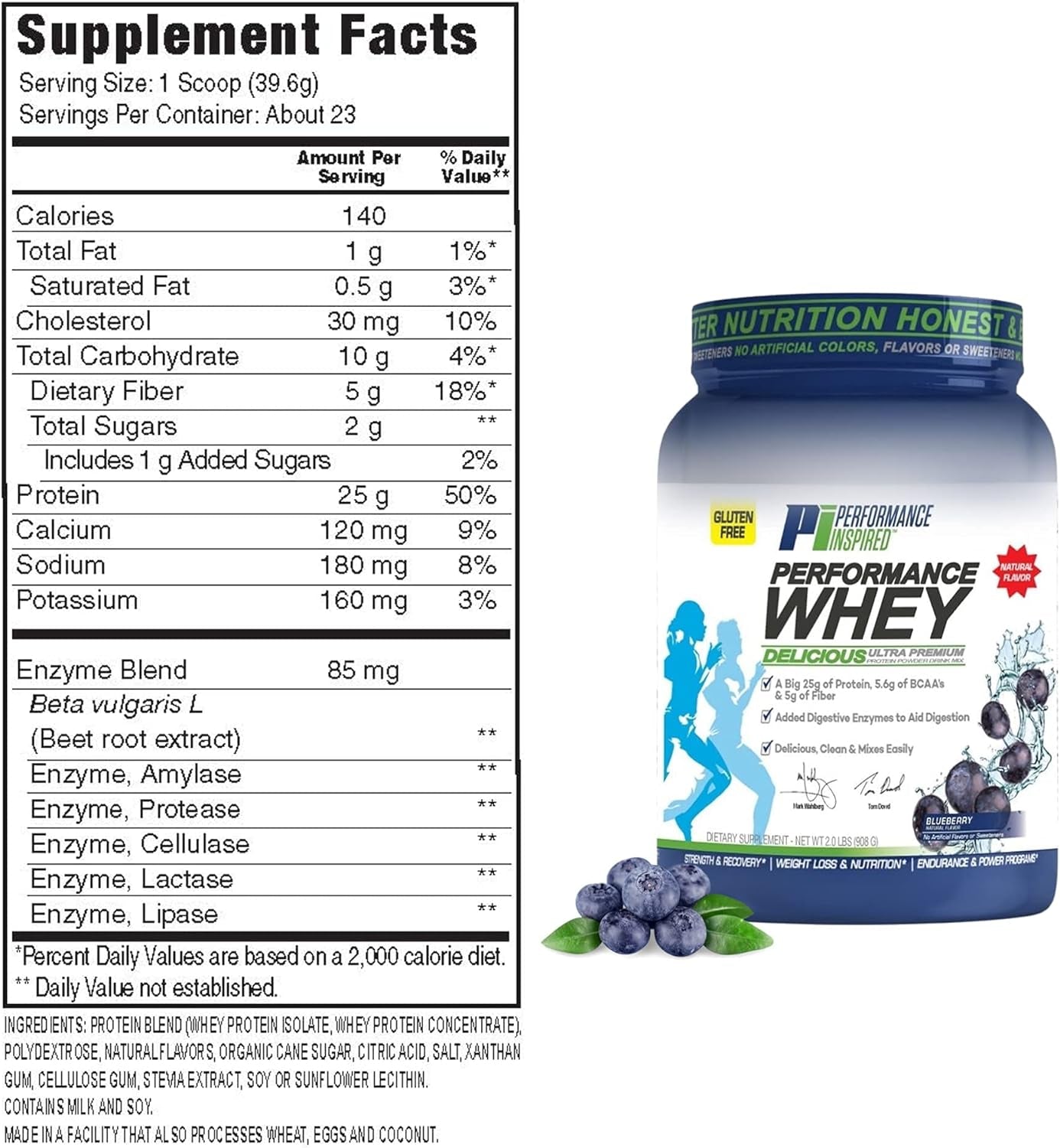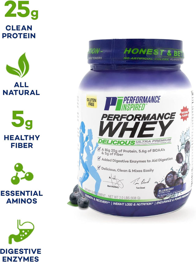 PERFORMANCE INSPIRED Nutrition - Performance Whey Protein Powder - All Natural - 25G - Contains Bcaas - Digestive Enzymes - Fiber Packed - Gluten Free – Blueberry – 2Lb