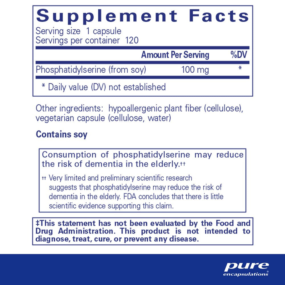 Pure Encapsulations PS 100 | Phosphatidylserine Amino Acid Supplement for Brain, Memory, and Cognitive Health* | 120 Capsules