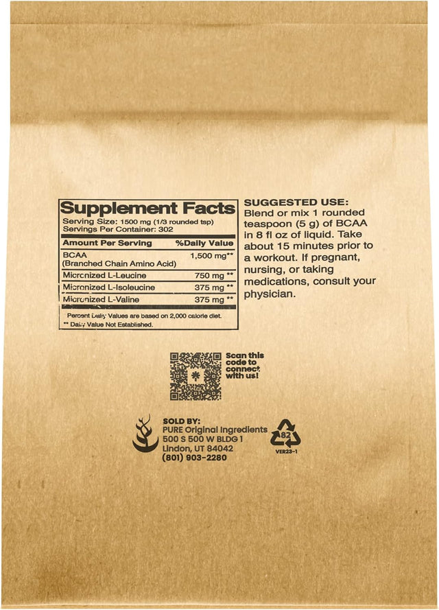 - Pure Original Ingredients Instantized BCAA Powder is made from a single ingredient, providing a pure undiluted supplement
