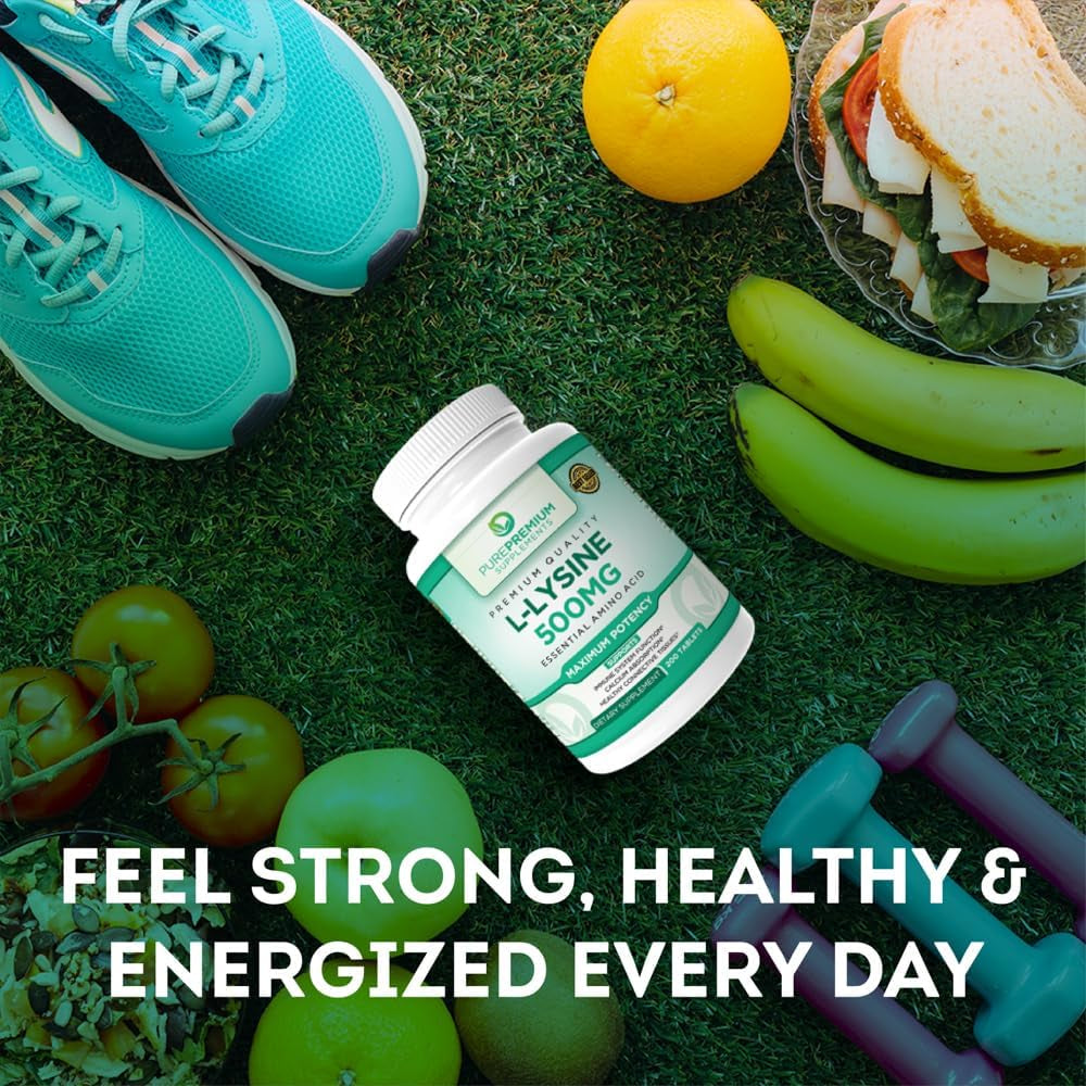 Purepremium L-Lysine 500 Mg - Lysine Supplement - Essential Amino Acid with Maximum Strength - Immune Support Supplement - Pure Lysine 500Mg for Fast Absorption - 7 Months Supply - 200 Tablets