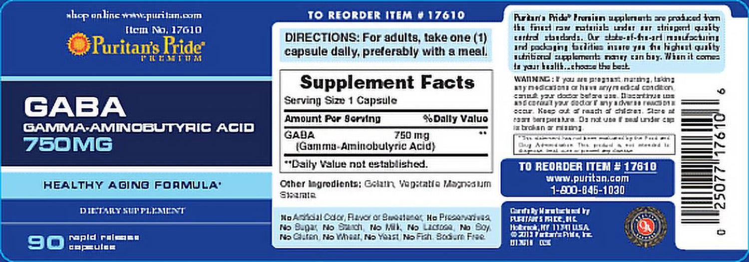 Puritan'S Pride GABA (Gamma Aminobutyric Acid) 750 Mg