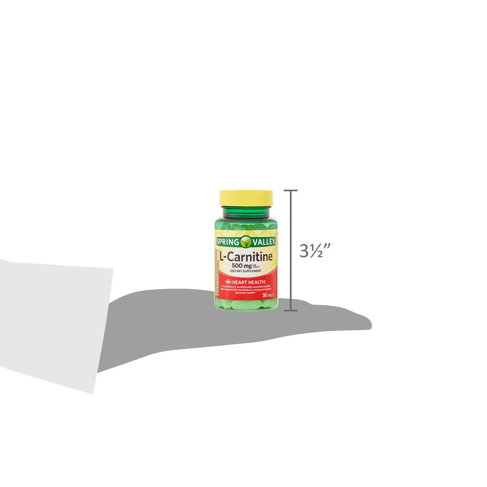 Spring Valley L-Carnitine Dietary Supplement, 500 mg is a dietary supplement formulated to support heart health. L-carnitine is a conditionally essential nutrient that supports fat metabolism, energy production and heart health. The suggested adult dosage is one tablet, four times daily, preferably with a meal. You can rest assured that Spring Valley L-Carnitine Dietary Supplement, 500 mg, is produced with strict quality guidelines and is backed by a quality guarantee, making it a smart choice for your dietary supplement needs.
