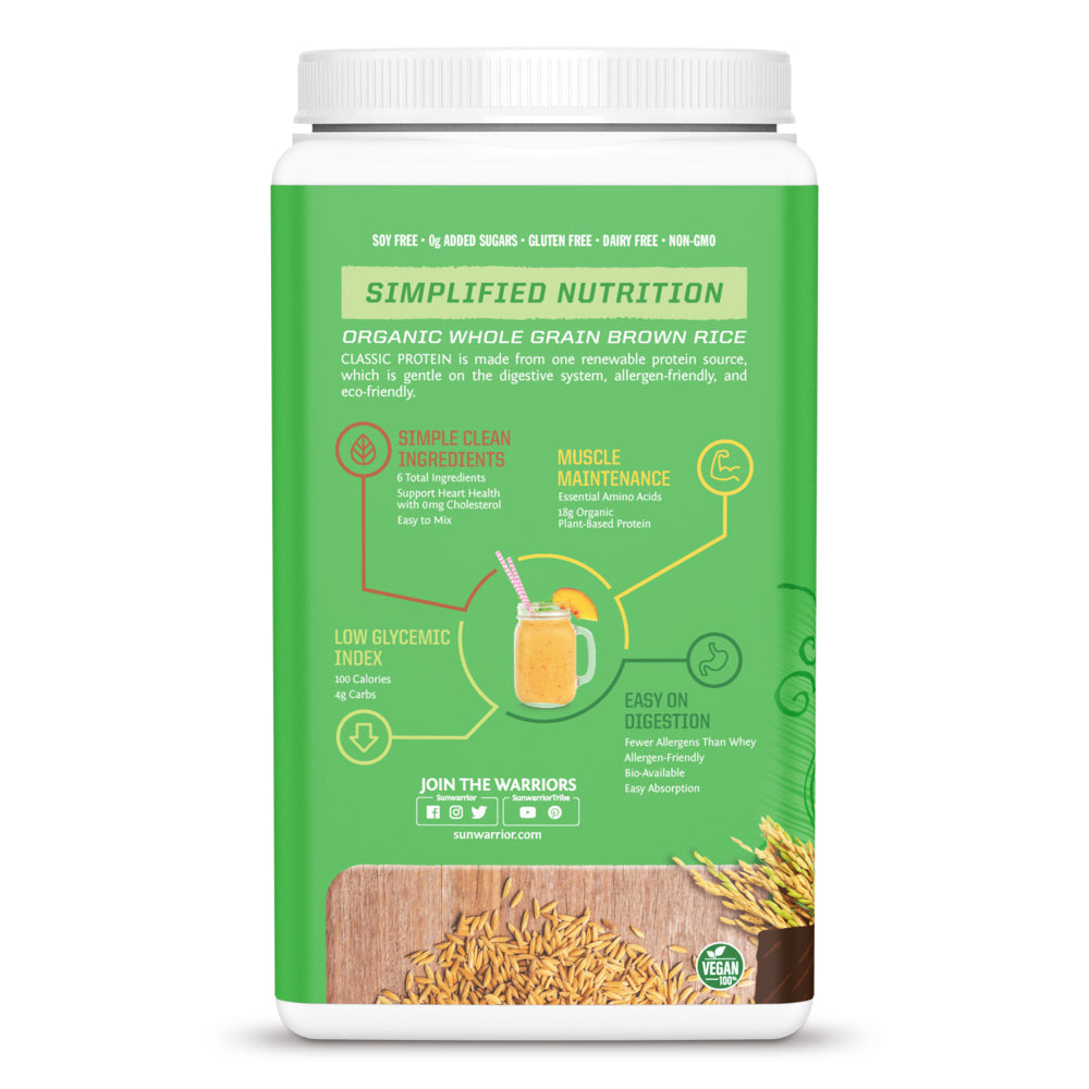 Classic Protein relies on the simple power of one renewable energy source: whole-grain brown rice (transformed with active enzymes). It delivers complete amino acids while being gentle on the digestive system. Classic is our clean and simple protein that