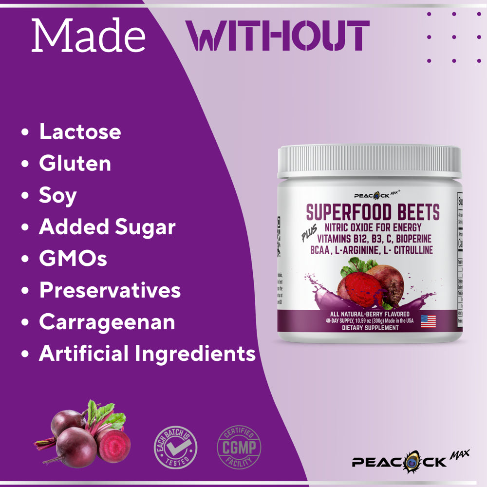 Superfood BEETS + Nitric Oxide Vitamins B12 B3 C BioPerine BCAA L Arginine L-Citrulline w