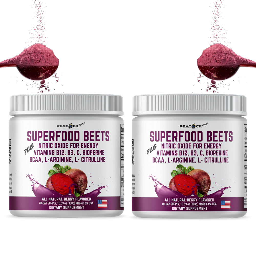 Our beet formula supports heart, cardiovascular system, blood pressure, and natural energy. 40 day supply of our organic beet root (5500mg) supplement contains Nitric oxide, Vitamin B12 (8.2mcg 42%), B3 (17mg 106%), Antioxidant C (41mg 46%), BCCA 2:1:1 (240mg), L-arginine HCI (240mg), L-citrulline DL Malate (120mg), Green Tea Leaf Extract (80mg), Bioperine (5mg) No GMO, No Cholesterol, No added sugars (natural beet sugar 4g) Product is berry flavored. 300 gram (10.59 oz) which makes 40 daily servings. It could be mixed with foods or drinks. While we suggest mixing it with 10 oz amount of water, please try it at different amounts of water to find your preferred concentration. Our team has members that mix it with only 4 oz of water all the way to 24 oz of water. product will work just as good at any amount of water.
