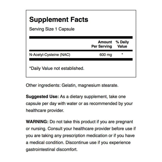 Swanson NAC N-Acetyl Cysteine Antioxidant Anti-Aging Liver Support & Amino Acids Supplement 600 Mg 100 Capsules - 1 Pack is backordered and will ship as soon as it is back in stock.