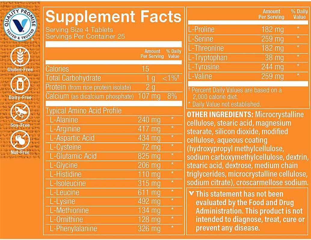 Supports exercise performanceSuitable for everyday wellness seekersFree of yeast, wheat, gluten, sugar, dairy, soy, nuts, citrus, fish, preservatives, and artificial colors or flavors Do you work out to work up a sweat, hit a new PR, or just get those feel-good endorphins flowing? Whatever your fitness goals are, consistency and hard work are key. Designed to promote exercise performance, The Vitamin Shoppe brand Amino Complex tablets contain 19 different amino acids. Take 4 tablets up to two times daily in between meals or right after a sweat sesh to support your body every step, rep, and breath of the way. Frequently Asked Questions What are amino acids?Otherwise known as the building blocks of protein, amino acids are molecules that come together to form proteins. There are 22 amino acids that are required by humans, and 9 of which must be consumed in our everyday diet.