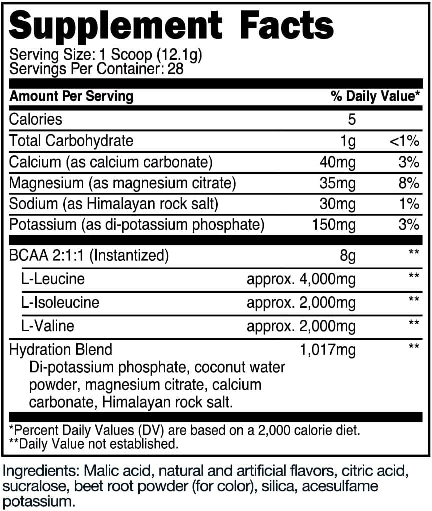 TransformHQ BCAA supplement contains 28 servings per bottle. BCAAs, short for branched-chain amino acids, provide leucine, isoleucine, and valine to help support your workout.