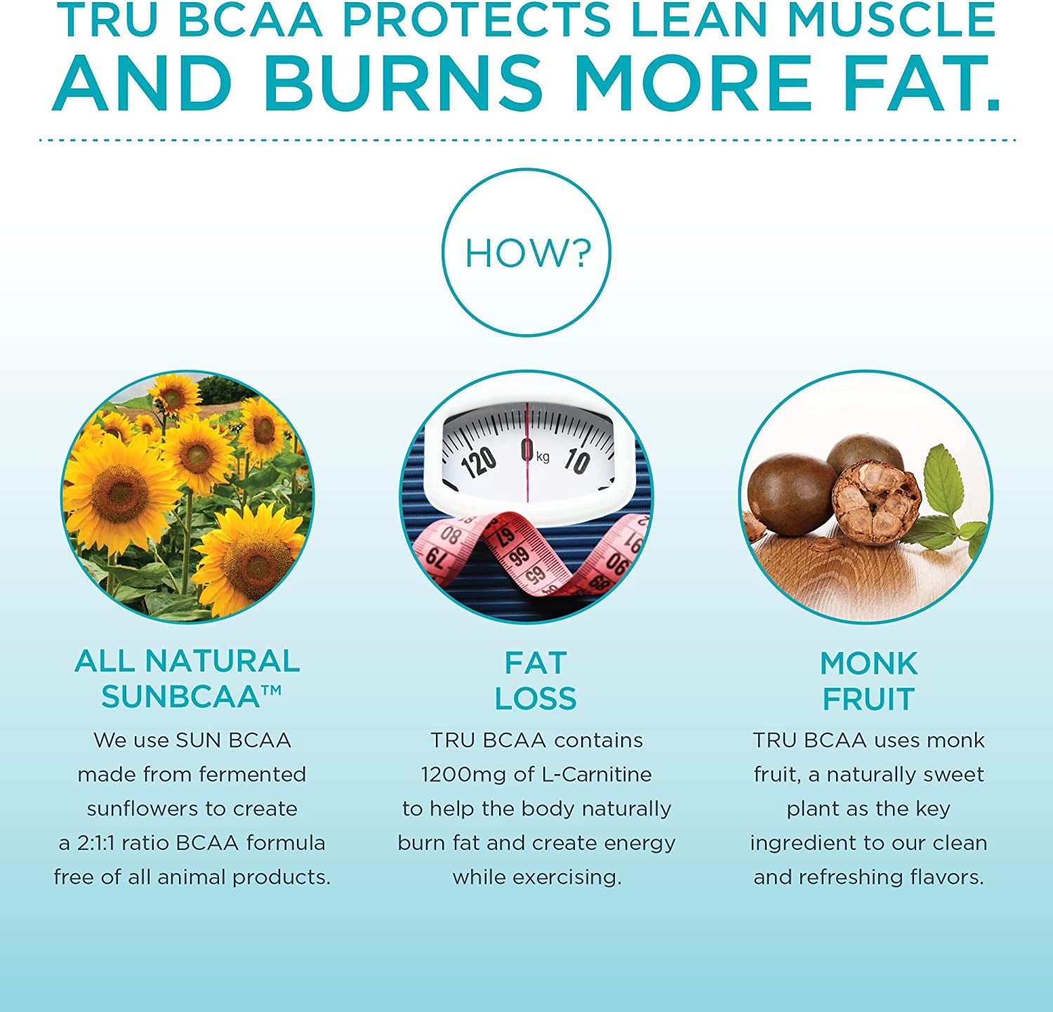 - TRU BCAA contains 1200 mg of the amino acid L-Carnitine paired with our perfect ratio of L-Leucine, L-Isoleucine, and L-Valine combo that gives you all the benefits that you expect from your BCAA regimen.