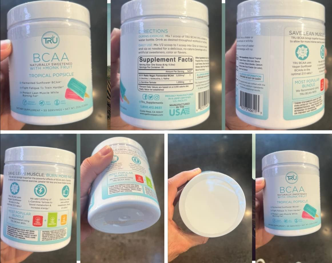 TRU BCAA, Plant Based Branched Chain Amino Acids, Vegan Friendly, Zero Calories, No Artificials Sweeteners or Dyes, 30 Servings, Tropical Popsicle - Tropical Popsicle / 30 Servings (Pack Of 1) is backordered and will ship as soon as it is back in stock.