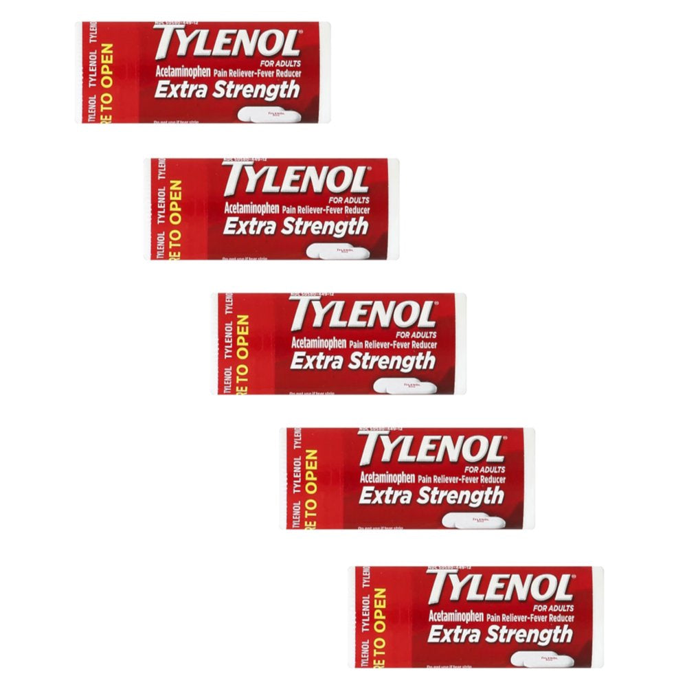 Tylenol Acetaminophen Extra Strength 500Mg 10 Caplet per Vial - Pack of 5 Vials