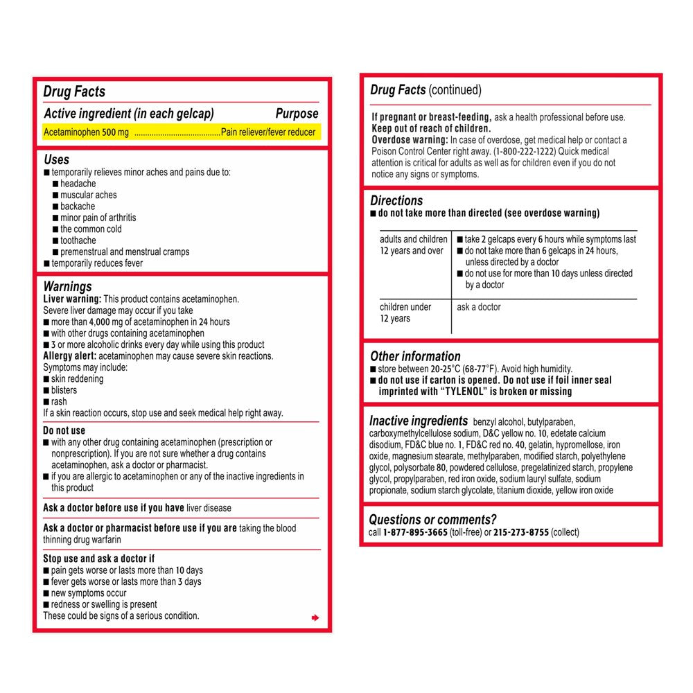 - Tylenol Rapid Release Gels pain medicine with 500 mg acetaminophen for fast, effective pain relief