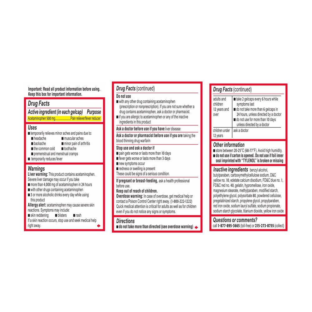 - Made with extra strength pain relief formula with 500 mg of acetaminophen contained in each gelcap