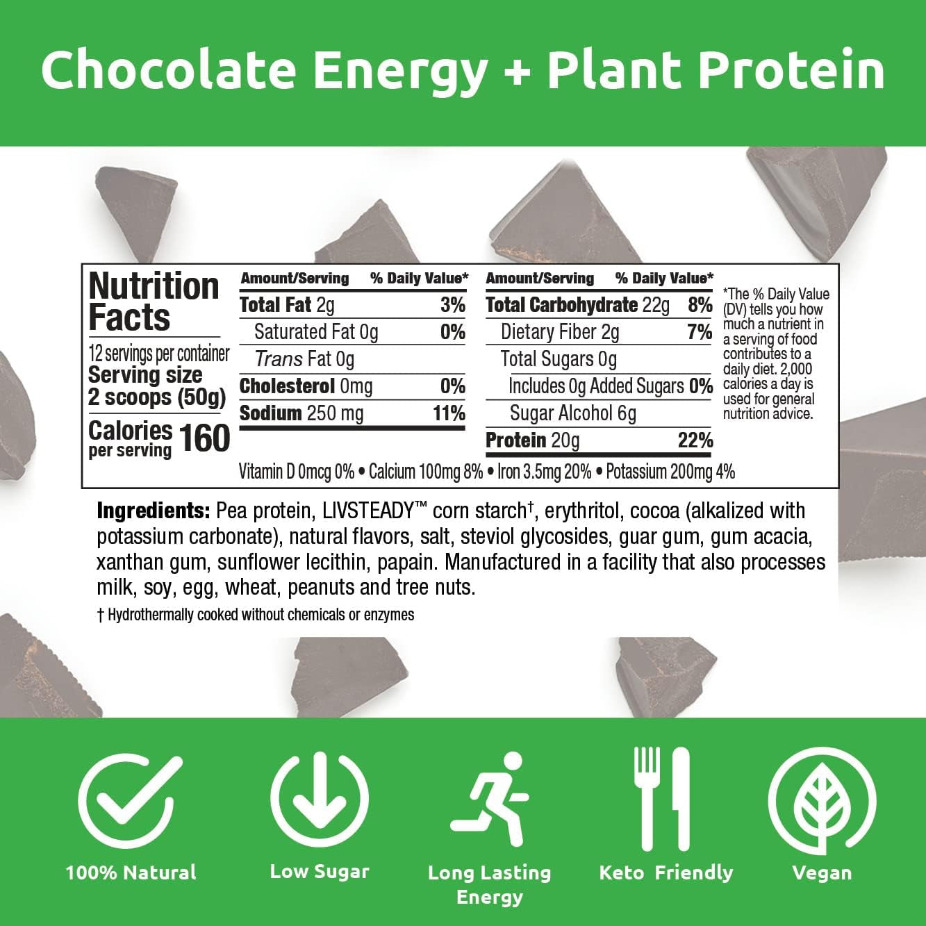 UCAN Energy + Plant Protein Powder - Vegan Plant Based Protein 20G Pea Protein with Amino Acids Eaas & Bccas - Keto Protein Powder - No Added Sugar, Gluten-Free - Chocolate -12 Servings - Chocolate is backordered and will ship as soon as it is back in stock.