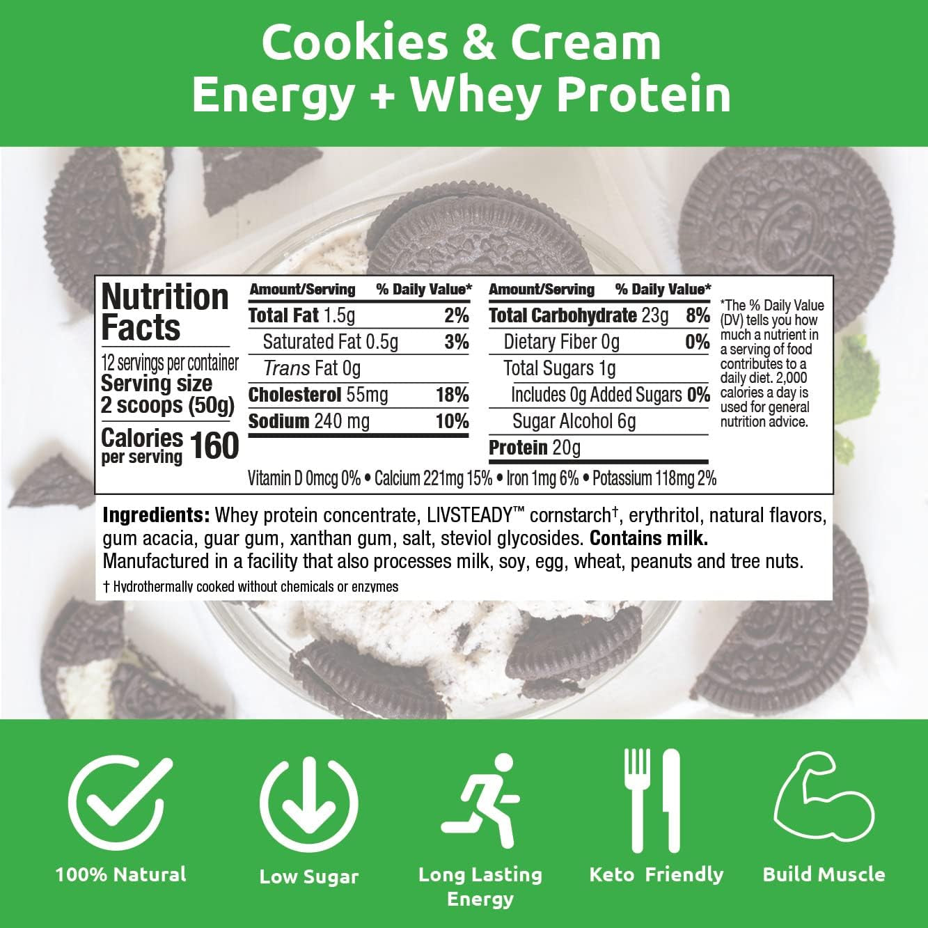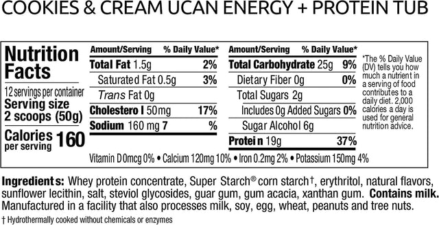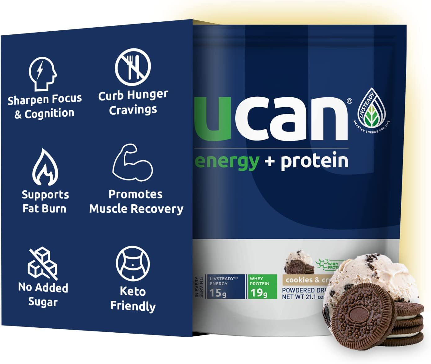 UCAN Energy + Whey Protein Powder - 19G per Serving with Amino Acids Eaas & Bccas - Keto, No Added Sugar, Gluten-Free - Cookies & Cream - 12 Servings