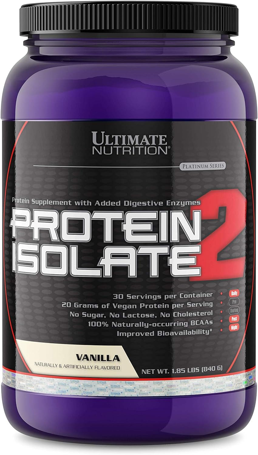 Ultimate Nutrition Vegan Plant Based Protein Isolate Powder - No Sugar and No Lactose - 20 Grams of Protein per Serving with 100% Naturally Occurring Bcaas, Vanilla, 2 Pounds