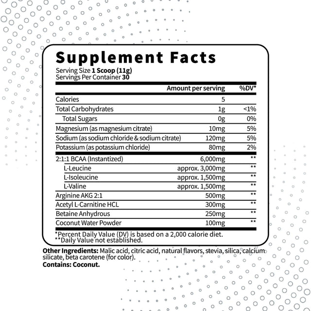 - ๐ฎ:๐ญ:๐ญ ๐ฅ๐ฎ๐๐ถ๐ผ๏ผ๐ ๐ฎ๐ ๐ถ๐บ๐๐บ ๐ฅ๐ฒ๐๐๐น๐๐ โ Formulated with 6 grams of pure Vegan Branched Chain Amino Acids as a 2:1:1 ratio of L-Leucine, L-Isoleucine, and L-Valine to maximize protein synthesis & muscle recovery as well as L-Arginine & L-Carnitine to support increased stamina and overall muscle performance.*