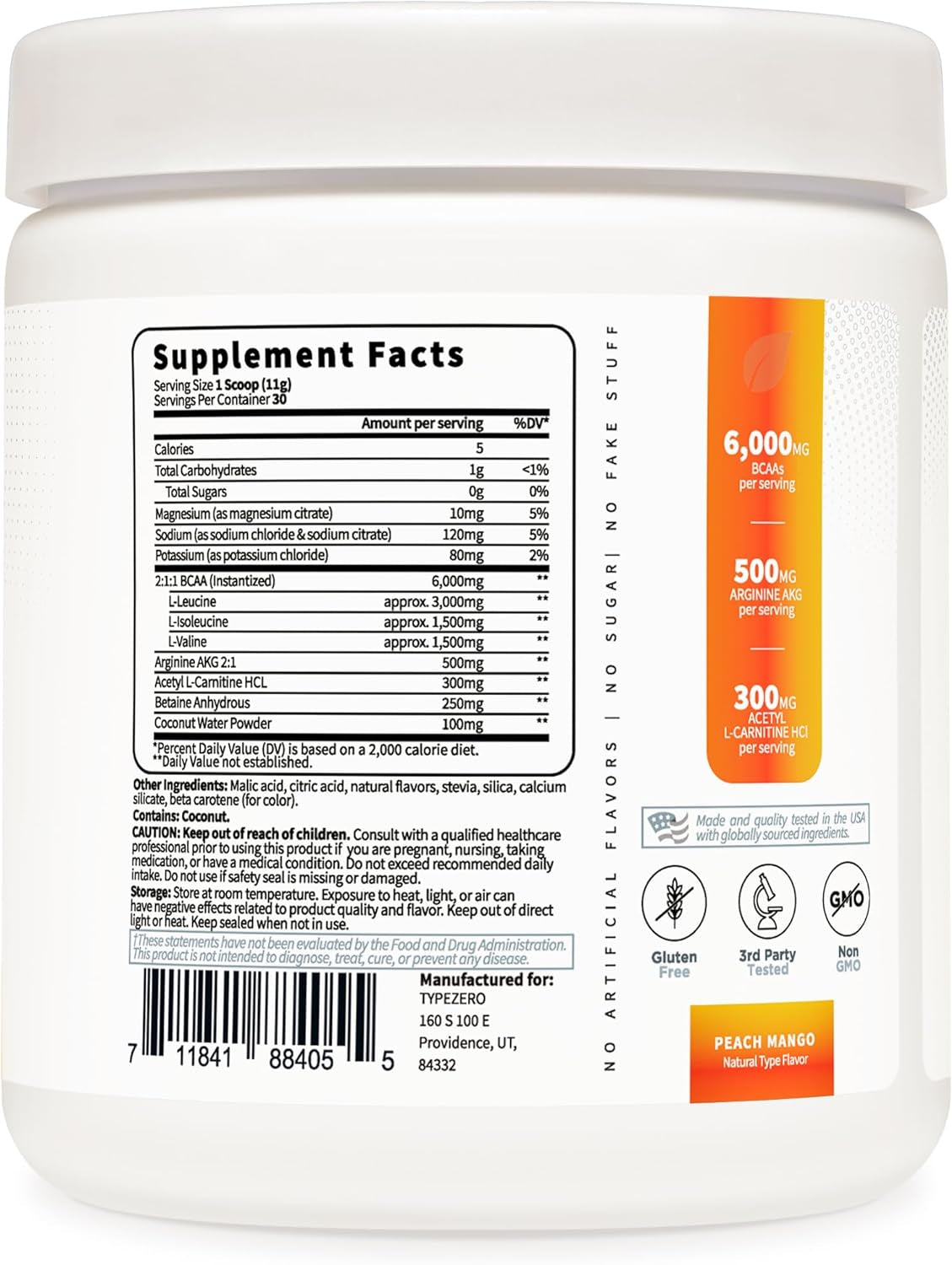 Ultra Clean Vegan BCAA Powder + Electrolytes (Peach Mango | 6G) 2:1:1 Sugar-Free/No Sucralose Bcaas Amino Acids Supplement for Women/Men - Best BCAA Vegan Amino Acids after Post Workout Recovery Drink - 1 is backordered and will ship as soon as it is back in stock.