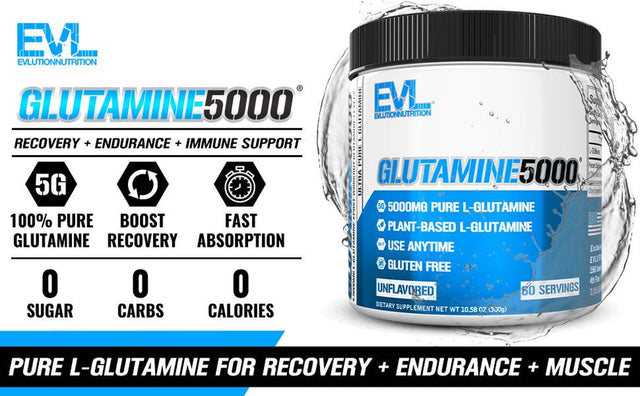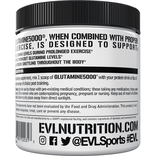 Fuel your body with Evlution Nutrition Glutamine5000, containing 5 grams of Ultra Pure L-Glutamine that supports a variety of essential functions to keep your body running strong.