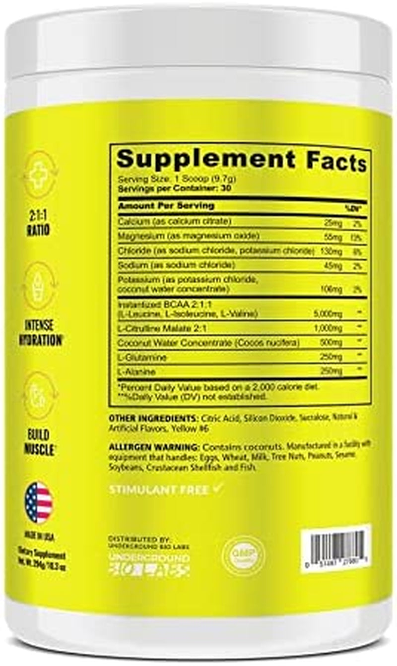 Underground Bio Labs™ Panda SUPPS – Recover BCAA + Hydration - 30 Servings, 5G BCAA 2:1:1, 1G L-Tyrosine, Coconut Water Powder, L-Glutamine, Stim-Free, Superior Taste and Absorption (Melon Ball)